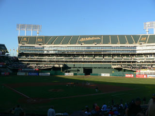 2008/08/15のVSシカゴ・ホワイトソックス戦を観戦しました。当日は、高速鉄道BARTに乗って30分でマカフィ・コロシアムへ行きました。試合前に年1回のドッグデイということで、球場外でペット犬のコンテストをして楽しみました。試合開始1時間前に球場に入ると、ドッグデイにちなんで、ドッグフードにプレゼントをいただきました。座席は3塁側ホームのダッグアウト上の10列目で、ちょっとお高い席でしたがそこはちょっと奮発して良い席にしました。試合は、どちらも日本人は所属していませんが、9回表までホームランが5本も出て4-4の同点、最後は日系4世のマウイ島出身のカート・スズキ捕手が、代打サヨナラホームランが打って6-4でアスレチックスが勝利。地元ファンが盛り上がって大変楽しかったです。